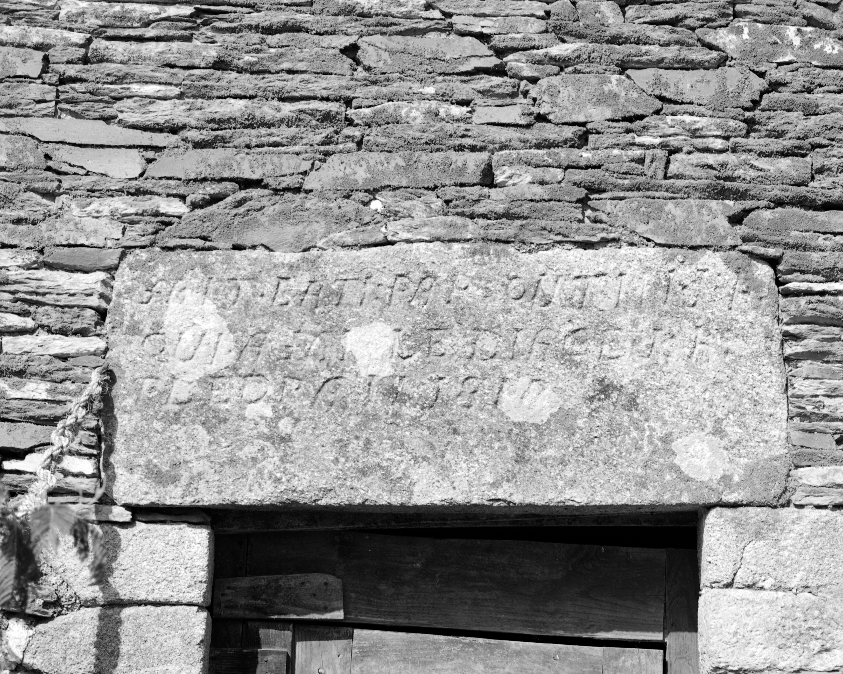 Maison, élévation sud : inscription gravée sur le linteau (état en 1984)Immatriculation