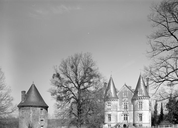 Château : tour isolée et tours dulogis vus de l'ouest (état en 1984)Immatriculation