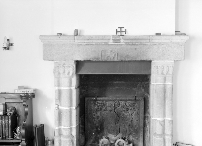 Manoir, aile ouest, logis : cheminée de la salle (état en 1984)Immatriculation