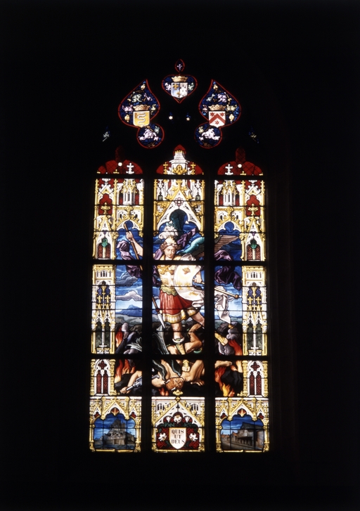 Verrière de la baie 16 : Saint Michel et le dragon (état en 1984)Immatriculation