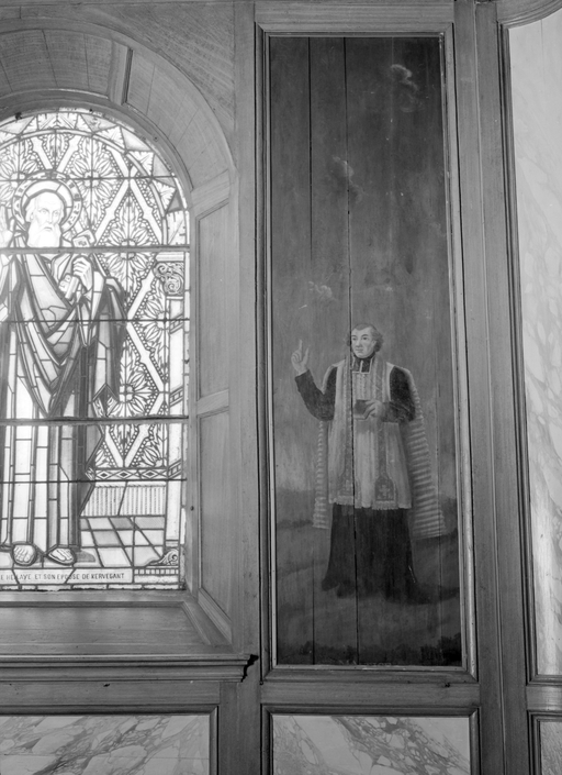 Tableau (9) : le Calvaire, saint Jean et saint Matthieu, saint Boniface, sainte Françoise, saint Joseph, père Maunoir, église paroissiale Saint-Pierre, Saint-Paul (Neulliac),