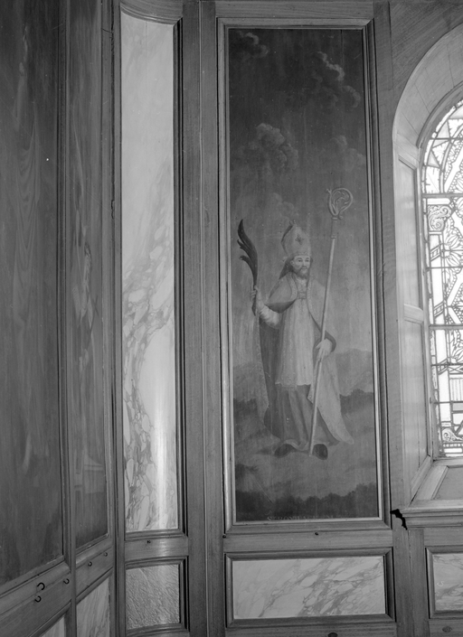 Tableau (9) : le Calvaire, saint Jean et saint Matthieu, saint Boniface, sainte Françoise, saint Joseph, père Maunoir, église paroissiale Saint-Pierre, Saint-Paul (Neulliac),