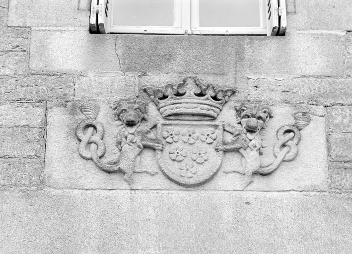 Elévation nord, armoiries des Lambilly : d'azur à six quintefeuilles d'argent (état en 1984)Immatriculation