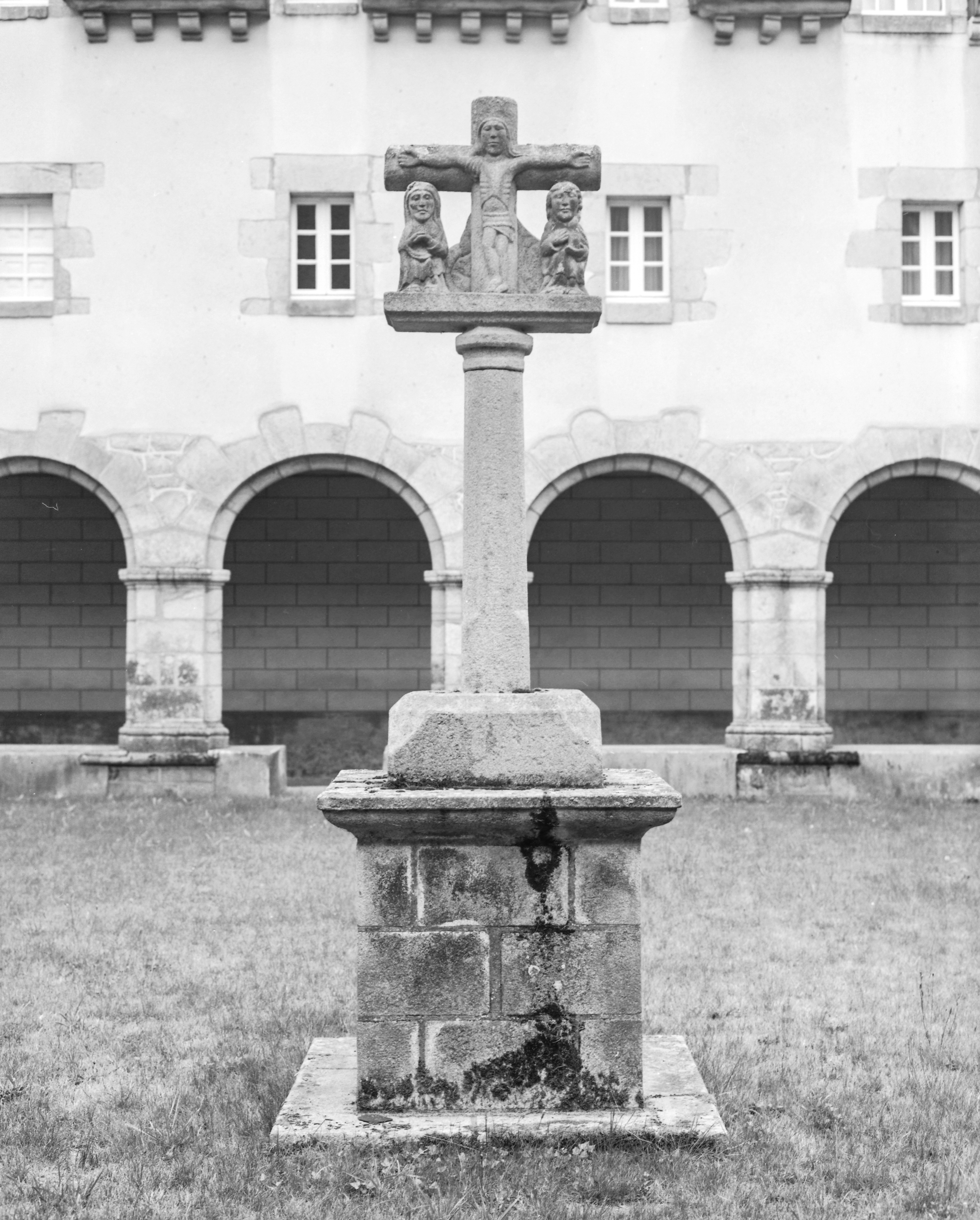 Couvent, croix monumentale au centre du cloître : face portant le Christ en croix (état en 1984)Immatriculation