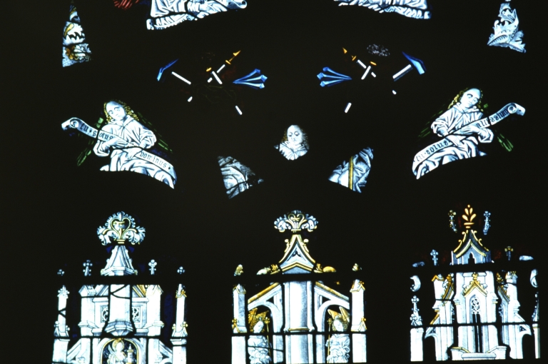 Baie droite : réseau, partie inférieure, anges et instruments de la PassionImmatriculation