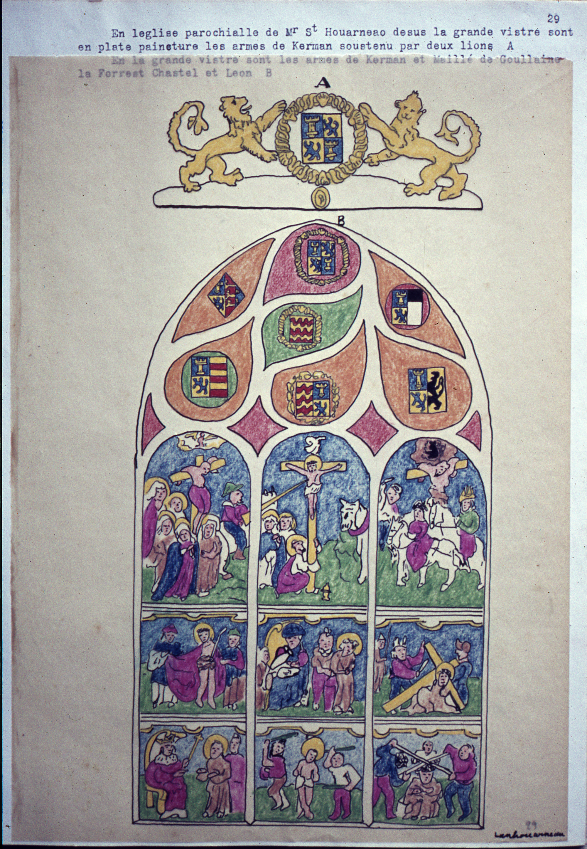 BOURICQUEN, Jan. Bref estat es preminences du marquis de Kerman et conte de Seszploe de mesme quelles sont es eglisses covent et chapelles tant en pierre boys viltres que lisières en Leon. Visite recuilli es ce presant livre faict pour hault et puissant mesire Charles de Maillé chevalier de l'Ordre du roy, gentilhomme ordinaire de sa chambre, seigneur marcquis de Kerman conte de Seizploue, baron de la Forest, [etc], par son peintre et vistrier humble et fidel serviteur Jan Bouricquen en 1614.