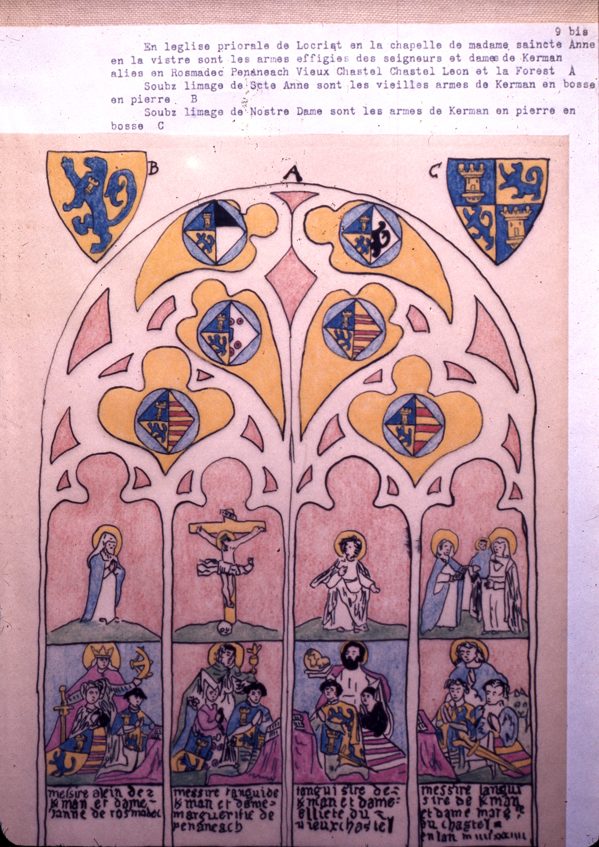 BOURICQUEN, Jan. Bref estat es preminences du marquis de Kerman et conte de Seszploe de mesme quelles sont es eglisses covent et chapelles tant en pierre boys viltres que lisières en Leon. Visite recuilli es ce presant livre faict pour hault et puissant mesire Charles de Maillé chevalier de l'Ordre du roy, gentilhomme ordinaire de sa chambre, seigneur marcquis de Kerman conte de Seizploue, baron de la Forest, [etc], par son peintre et vistrier humble et fidel serviteur Jan Bouricquen en 1614.