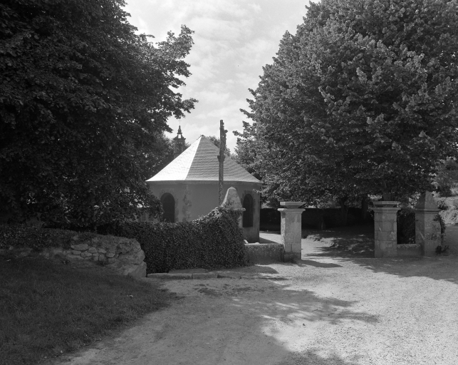 Plougoulm, chapelle de Notre-Dame de Prat-Coulm : vue de situation prise de l'est, état en 1985Immatriculation