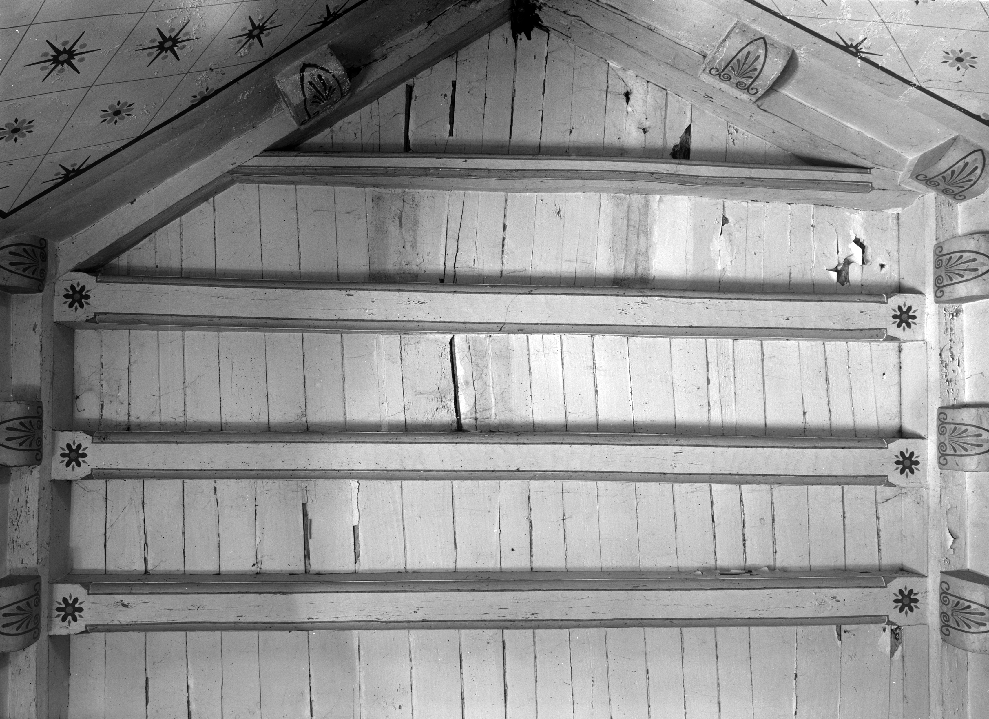 2e étage, tour nord-est, détail peinture du plafond et des poutresImmatriculation