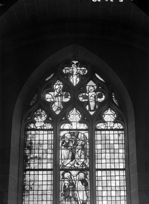 Verrière (verrière hagiographique) (baie 3), ancienne collégiale, actuellement église Sainte-Marie-Madeleine (Champeaux),
