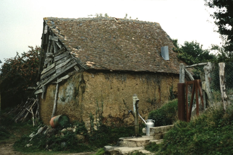 Fournil en ruine avec toit de tuiles, vue générale.Immatriculation