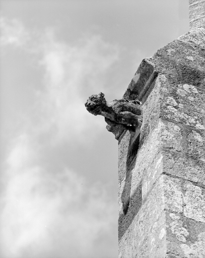 Elévation sud, vue de détail de gargouille.Immatriculation