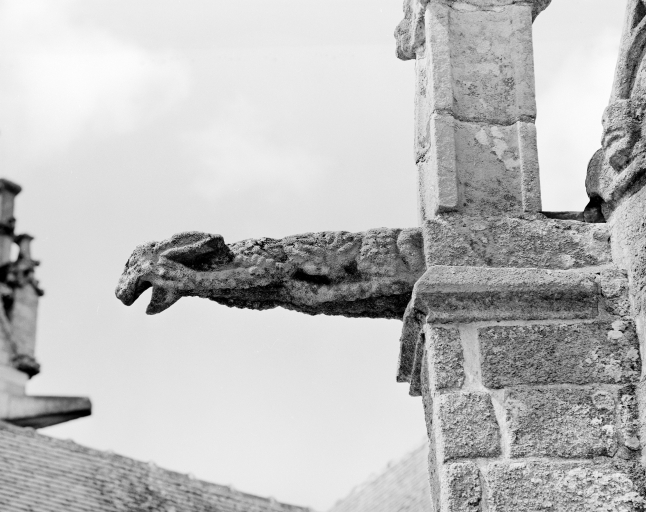 Elévation sud, vue de détail de gargouille.Immatriculation