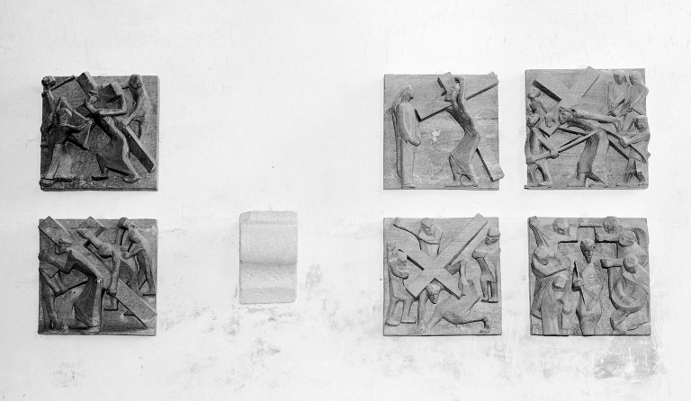 Chemin de croix, vue générale de six panneaux.Immatriculation