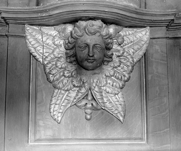 Table d'autel, devant d'autel, retable, exposition, gradins d'autel (3), statues (2) (maître-autel, retable architecturé à niche, retable cadre, tabernacle à ailes, figure d'ornement),