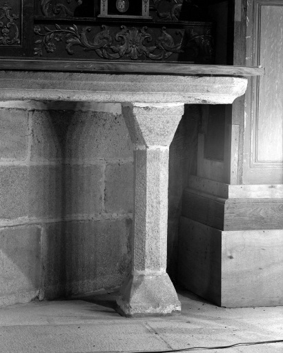 Autel en pierre, vue de détail.Immatriculation