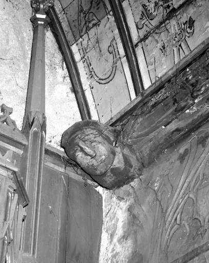 Intérieur, sablières : détail d'un blochet.Immatriculation