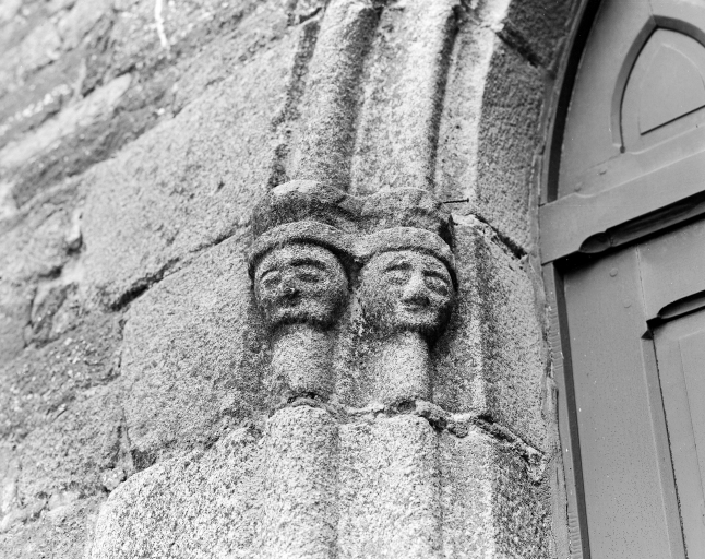 Façade nord : porte ouest, détails sculptés.Immatriculation