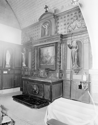 Autel, retable, tabernacle, gradins d'autel (2) (autel secondaire, retable architecturé à niche), dit du rosaire,