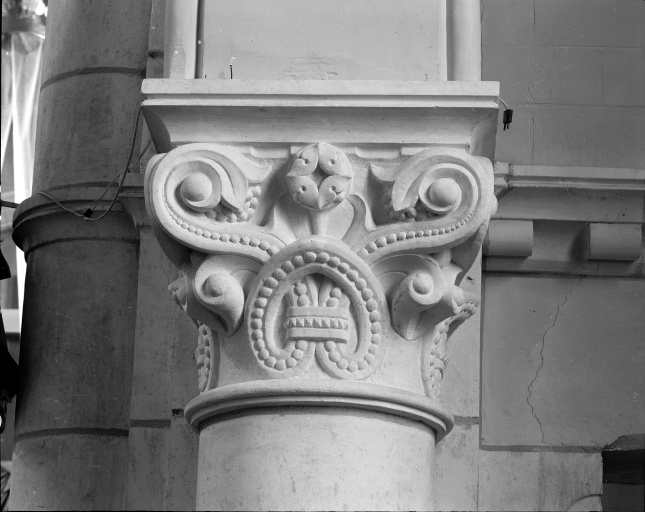 Intérieur, nef : vue de détail d'un chapiteau.Immatriculation