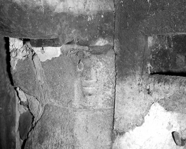 Cheminée : vue de détail de piédroit.Immatriculation