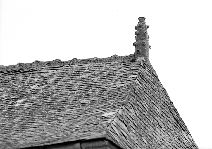 Epi de faîtage, vue de détail.Immatriculation