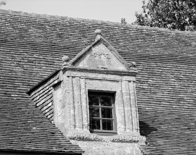 Logis, lucarne gauche datée 1652, vue générale.Immatriculation
