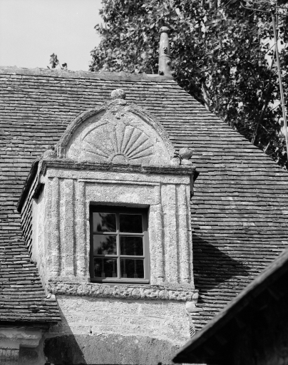 Logis, lucarne droite, vue générale.Immatriculation