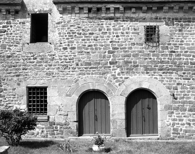 Logis, façade : détail partie centrale.Immatriculation