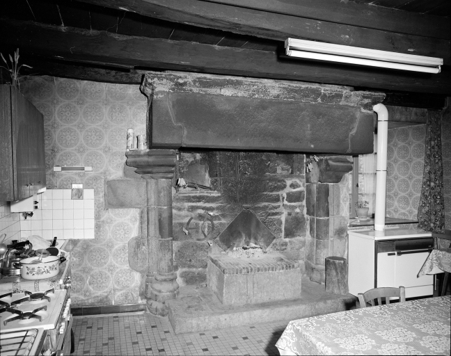 Grande salle sud, cheminée, vue générale.Immatriculation