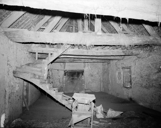 Charpente et cheminée de l'étage : vue générale.Immatriculation