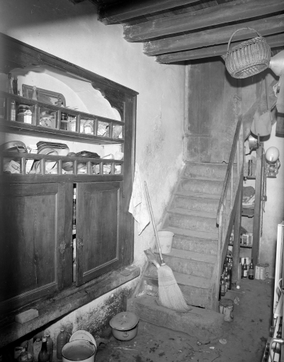 Logis sud, intérieur : dalle et escalier, vue générale.Immatriculation
