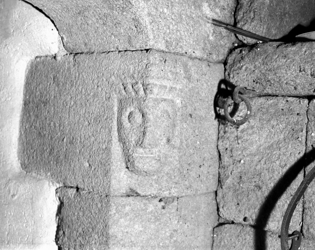 Grande salle, cheminée : détail piedroit, vue de détail.Immatriculation