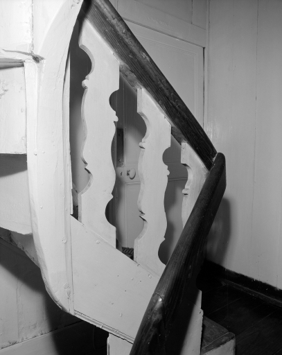 Intérieur : détail de la rampe d'escalier.Immatriculation