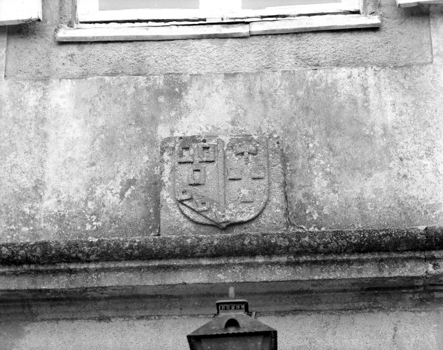 Façade antérieure, vue de détail des armoiries.Immatriculation