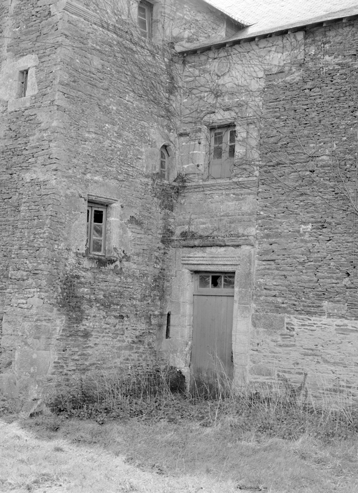 Manoir, élévation principale : tour d'escalier et porteImmatriculation