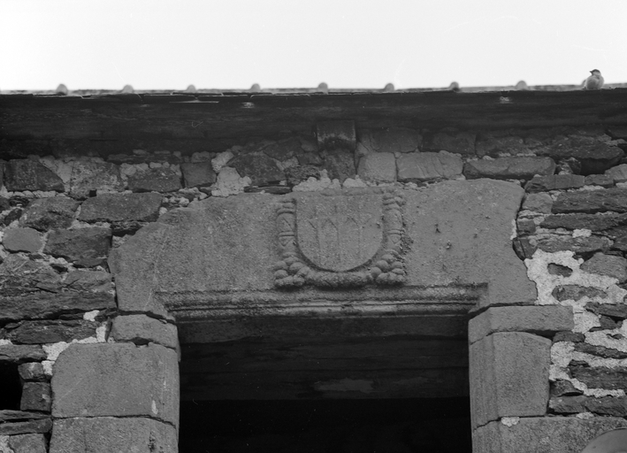 Manoir : blason sur le linteau de la fenêtre du premier étage ; armoiries non identifiées (état en 1985)Immatriculation