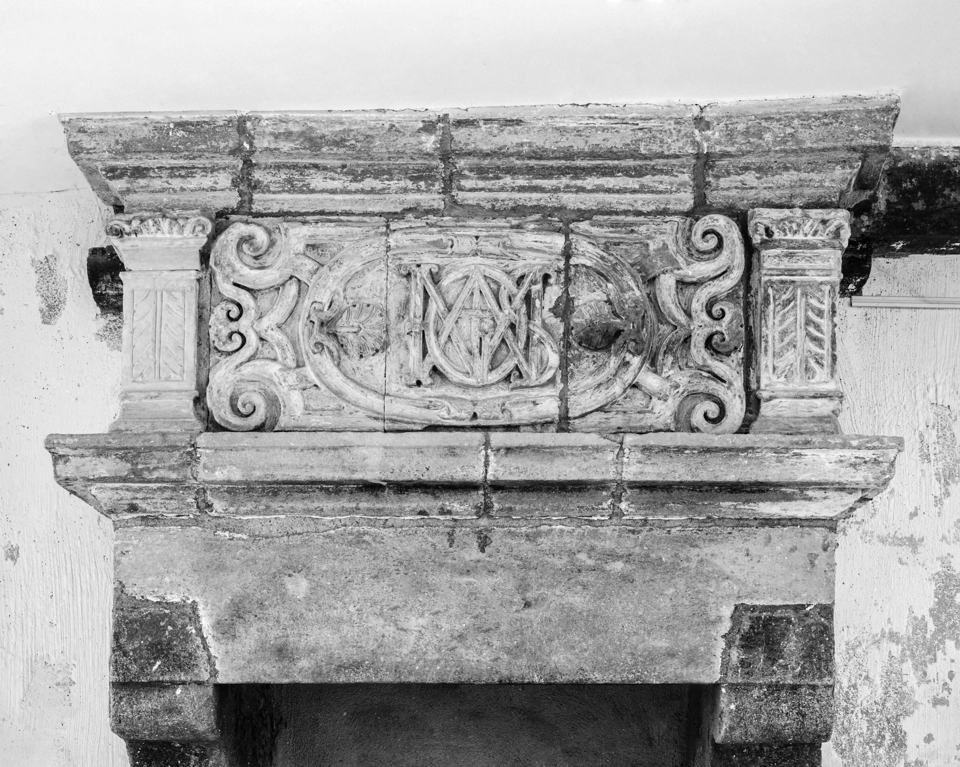Maison, cheminée 1 : décor de la hotte (état en 1985)Immatriculation