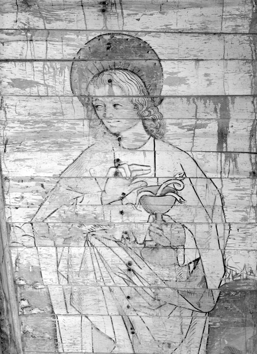 Peintures (8) : vie de sainte Catherine, anges, saint Pierre, saint Jean, chapelle Notre-Dame-de-Carmes (Neulliac),