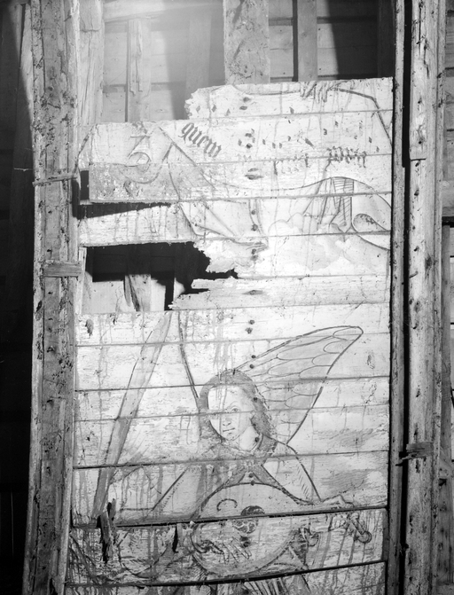 Peintures de plafond B, panneaux 5b et 5c : détail.Immatriculation