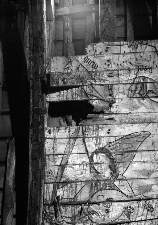 Peintures de plafond B, panneaux 5b et 5c : détail.Immatriculation