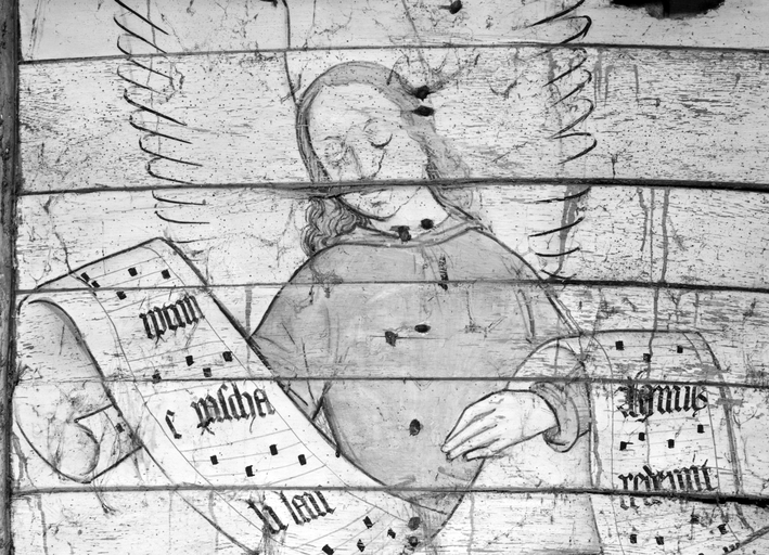 Peintures (8) : vie de sainte Catherine, anges, saint Pierre, saint Jean, chapelle Notre-Dame-de-Carmes (Neulliac),