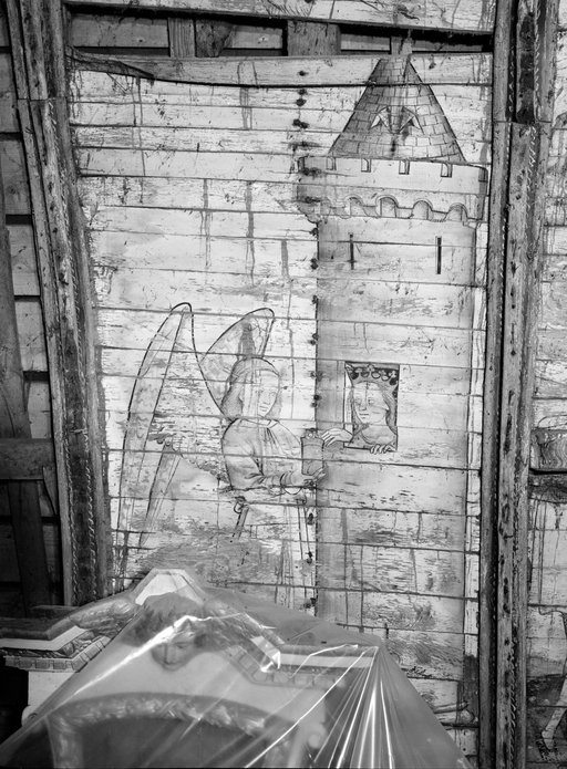 Peintures (8) : vie de sainte Catherine, anges, saint Pierre, saint Jean, chapelle Notre-Dame-de-Carmes (Neulliac),