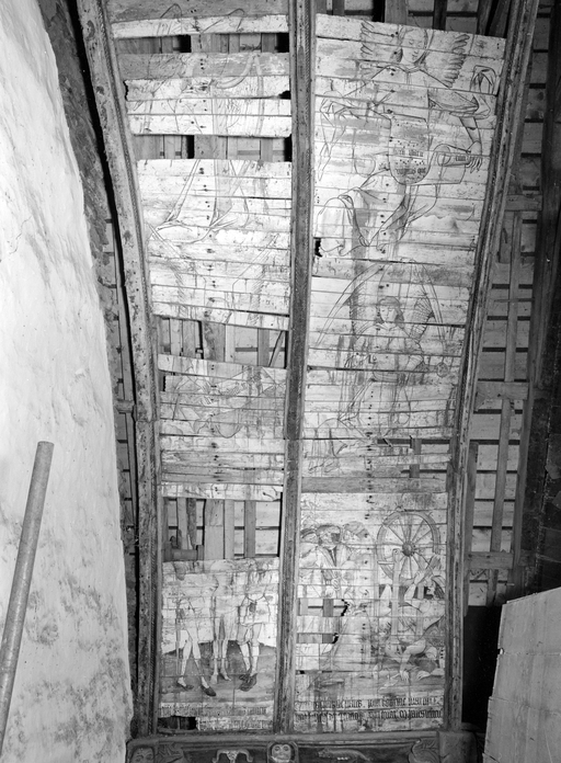 Peintures de plafond B, panneaux 1 et 2, vue générale.Immatriculation