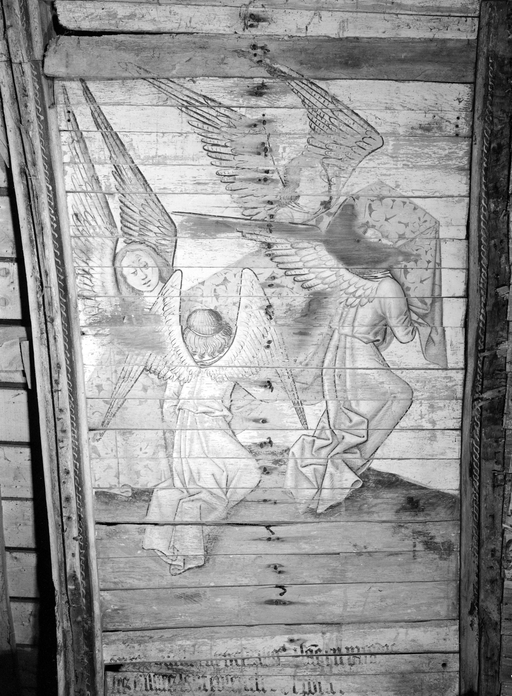 Peintures (8) : vie de sainte Catherine, anges, saint Pierre, saint Jean, chapelle Notre-Dame-de-Carmes (Neulliac),