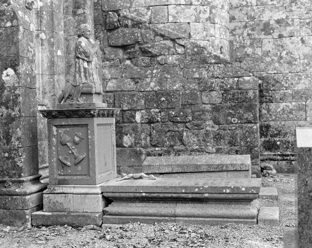 Tombe de l'abbé Le Carré adossé au mur sud de l'église, vue générale de 3/4.Immatriculation
