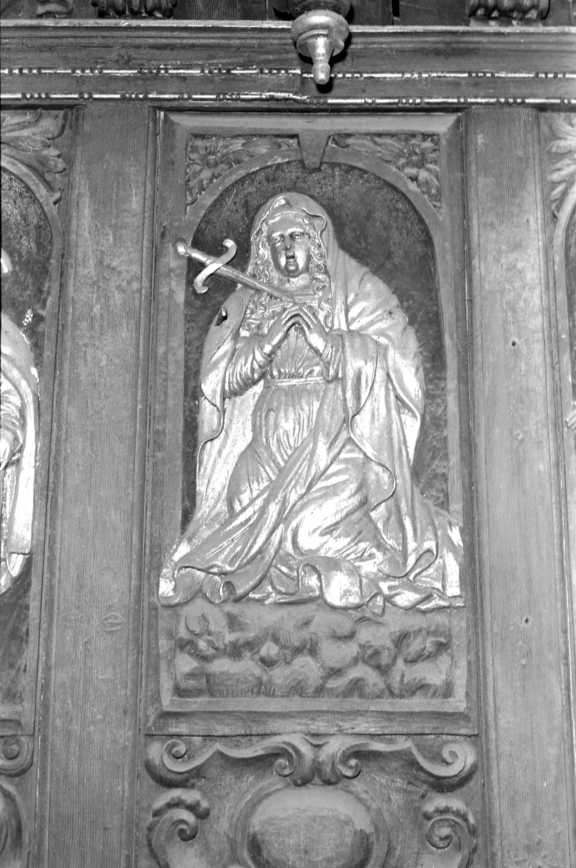 Soubassement du grand buffet, bas-reliefs sculptés et dorés, la Vierge de Douleur.Immatriculation