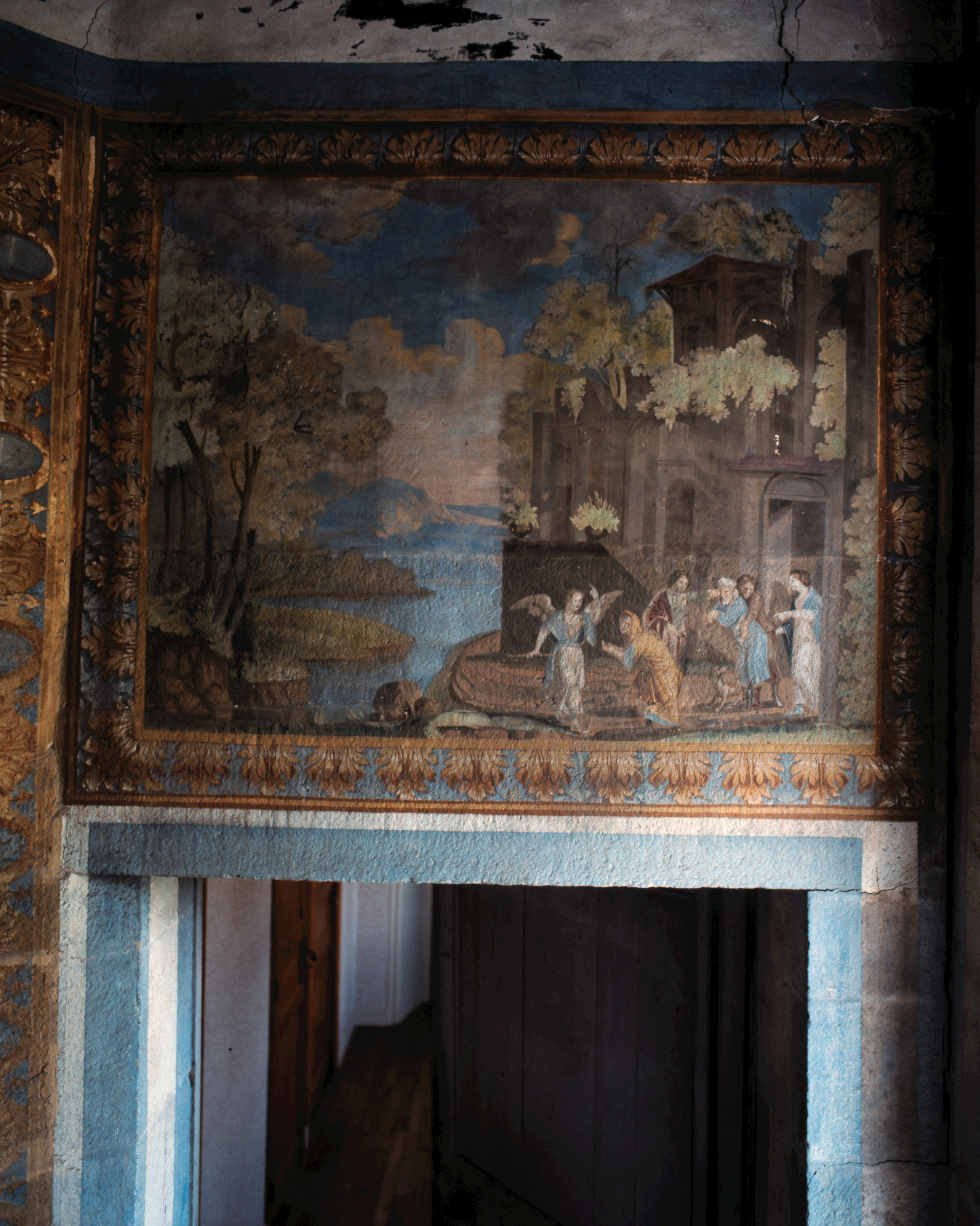 Ensemble de six peintures monumentales (deux dessus-de-porte, quatre peintures murales) : Scènes de la vie de Tobie, paysages, scènes champêtres, Maillé (Plounévez-Lochrist),