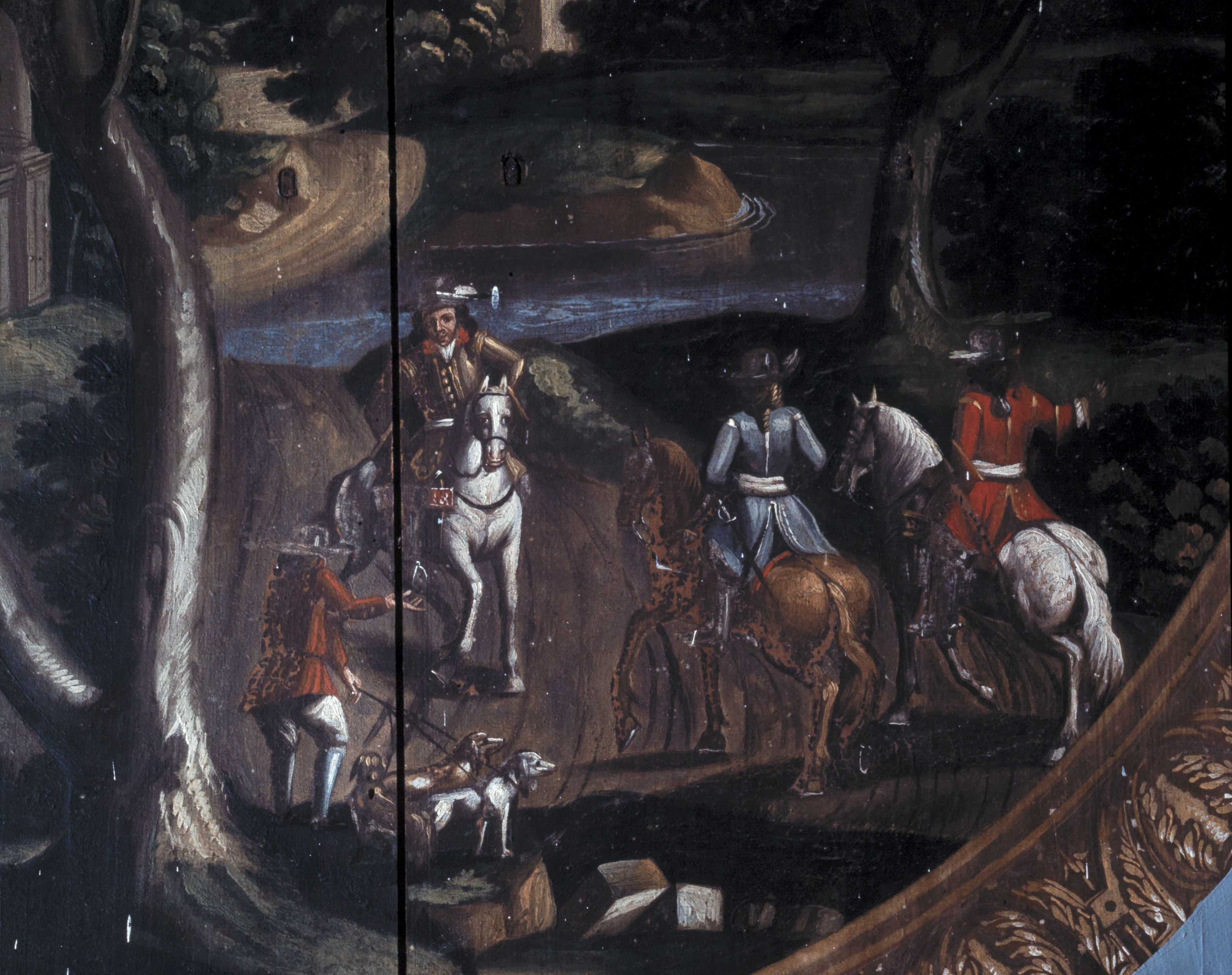 Dessus-de-porte, porte est, Paysage avec une chasse : les chasseurs (état en 1986)Immatriculation