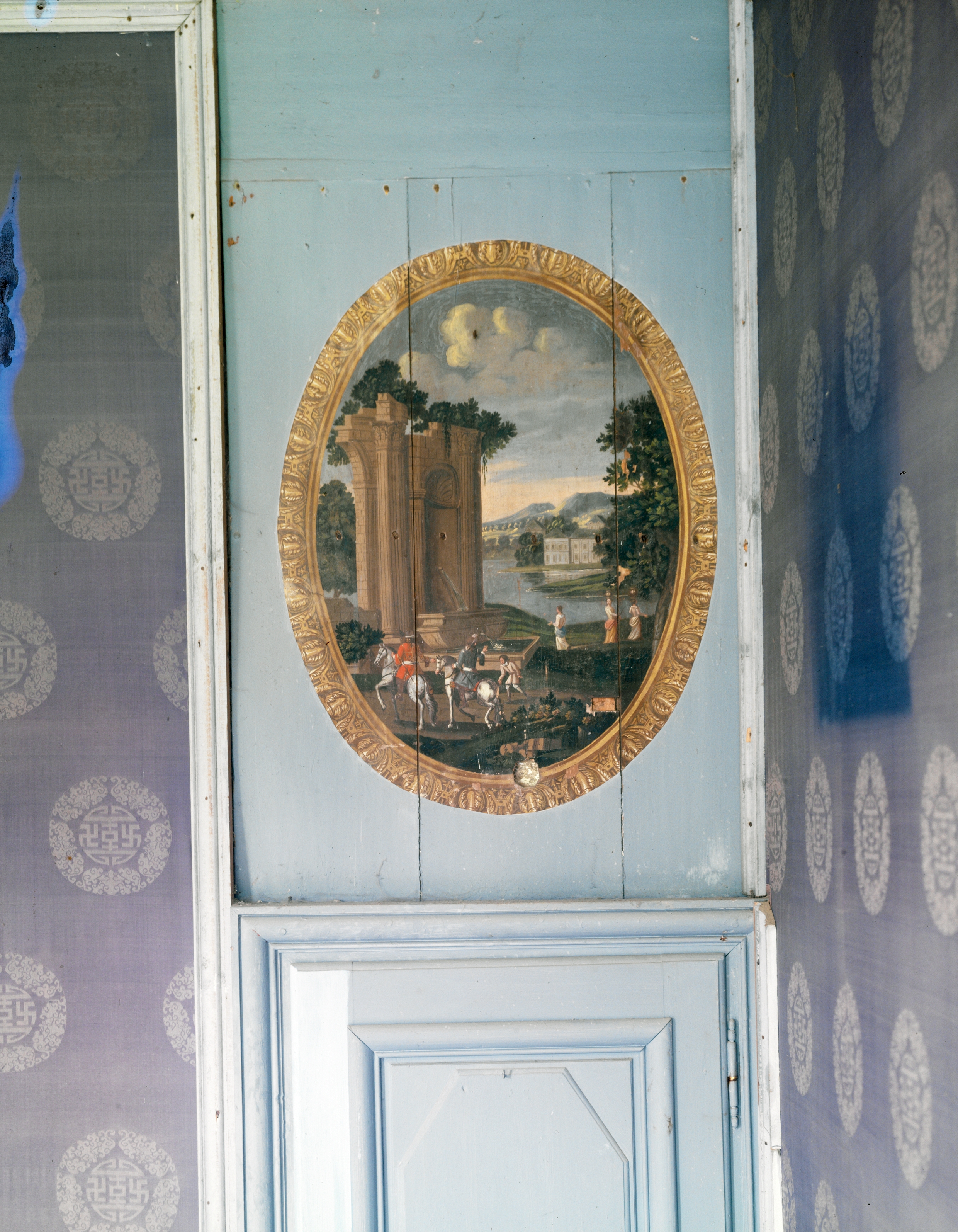 Dessus-de-porte, porte nord : Paysage avec une fontaine monumentale (état en 1986)Immatriculation
